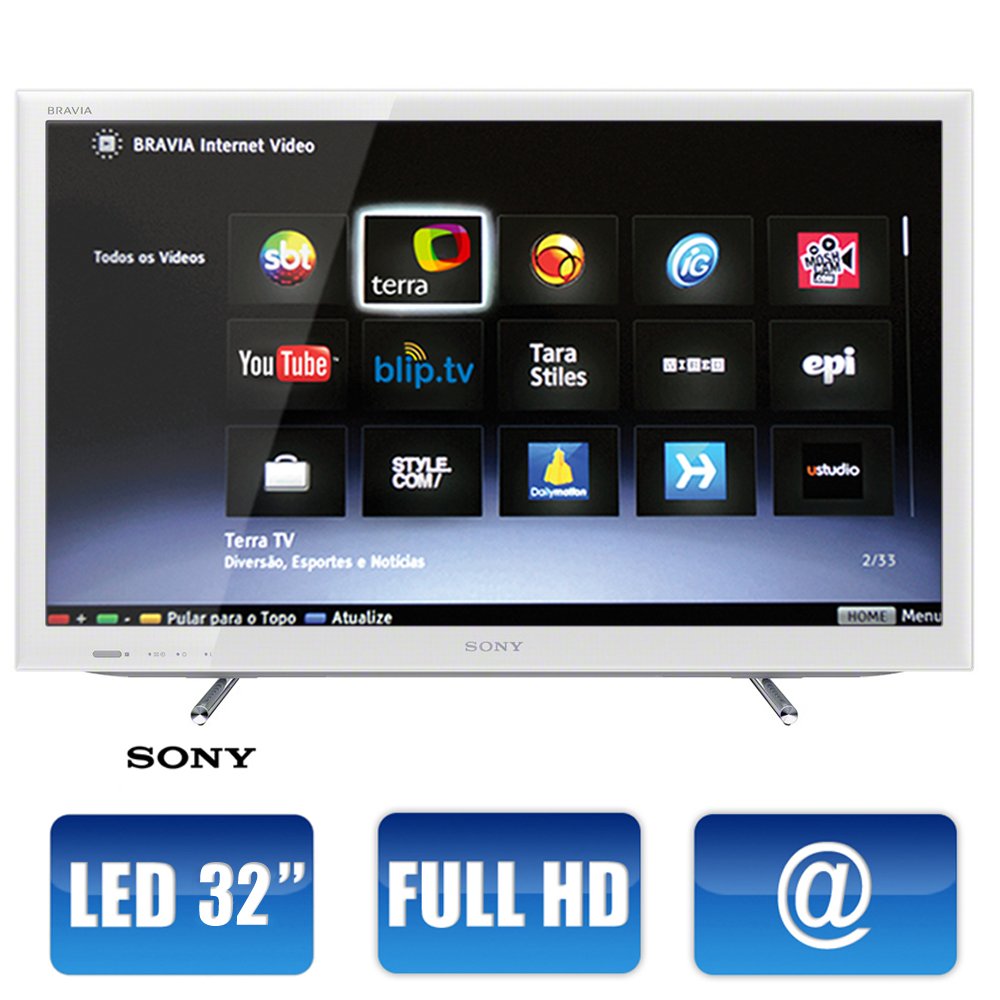 Smart TV LED 32" Sony KDL-32EX655/W Full HD Conversor Digital, 120 Hz, HDMI, Entrada para Computador, Conexão a Internet, Entrada USB/SD